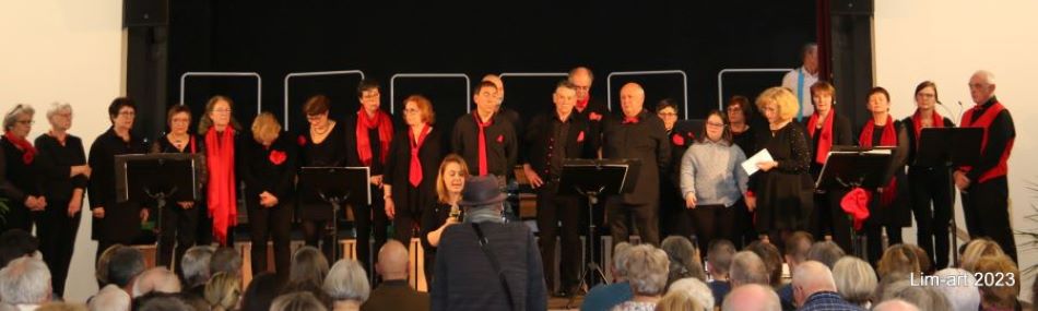 Les chorales Chantelune et Têt'en l'air étaient associées, samedi soir, dans la salle socioculturelle de la commune, pour offrir un spectacle plein de vivacité et de bonne humeur. Pendant près de deux heures, soixante choristes ont décliné le « Dans la vie, faut pas s'en faire » et incité à « chanter la vie ». Sur le thème d'une opposition entre « les hippies » et les « raisonnables », les deux groupes ont rivalisé en chansons, passant de Michel Berger à Michel Fugain avec bonheur alors qu'un texte d'Apollinaire, datant de 1913, était malicieusement glissé dans le programme. Le public, très nombreux, a fait, sourire aux lèvres, une chaleureuse ovation aux artistes.