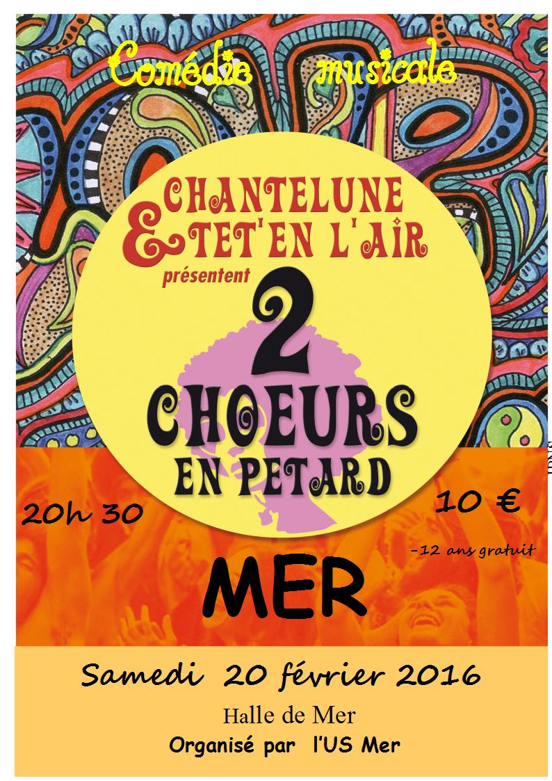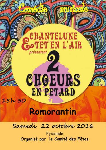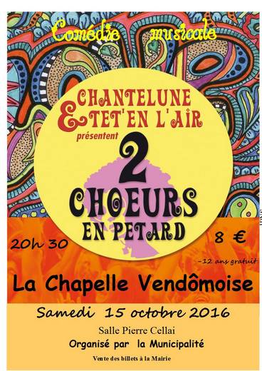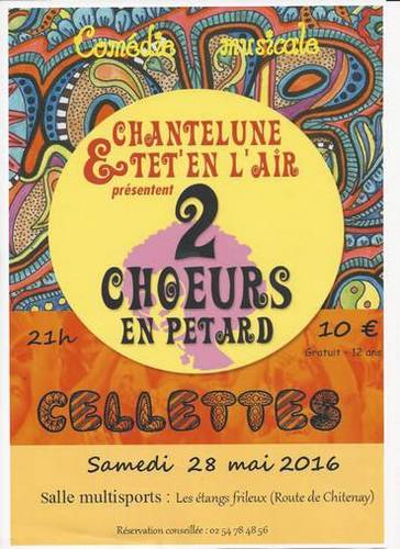 Le 28 mai, la salle omnisports des Etangs Frileux accueillait ce samedi soir les choristes des groupes Chantelune de Cellettes et de Têt'en l'Air de Blois sud pour leur spectacle de comédie musicale intitulé « 2 chœurs en pétard ».