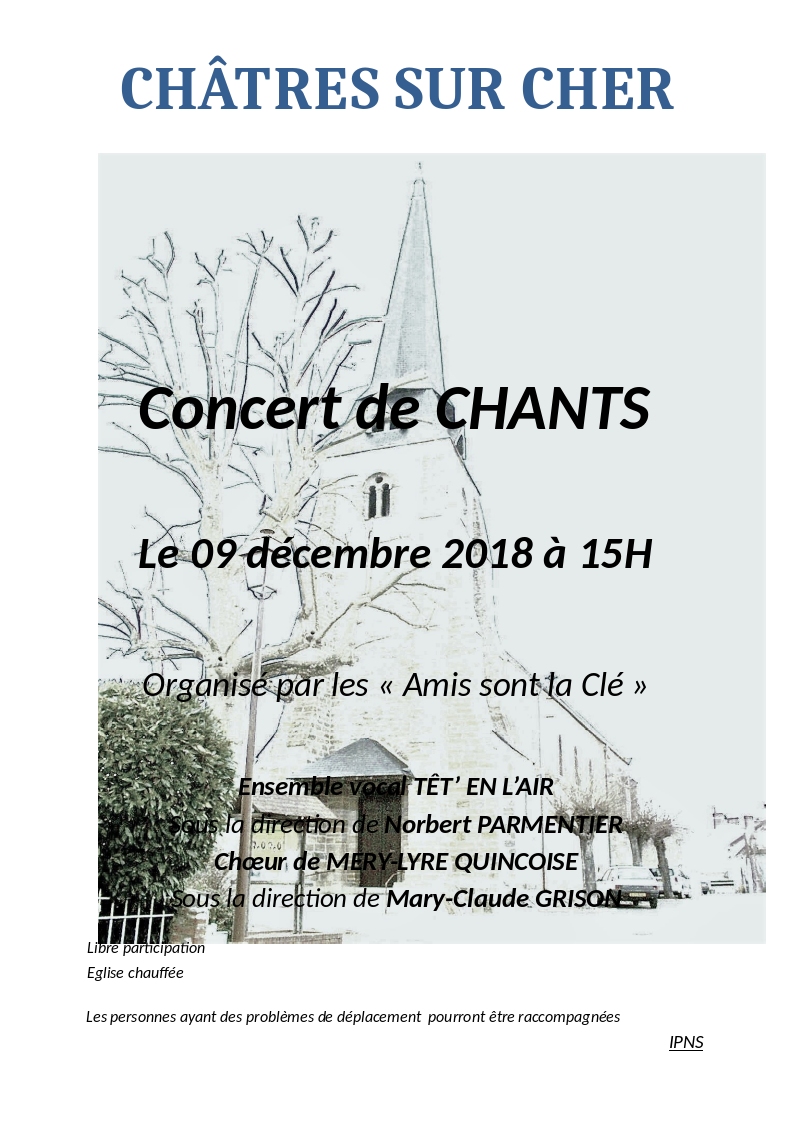 Concert de Noël à Châtre sur Cher dimanche 9 décembre 2018