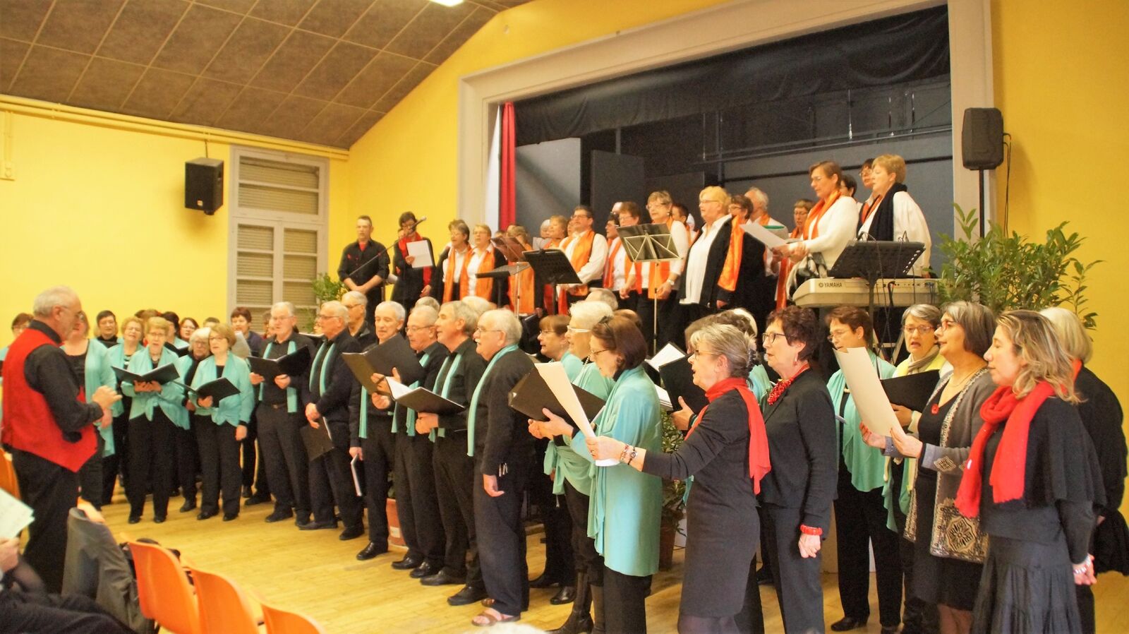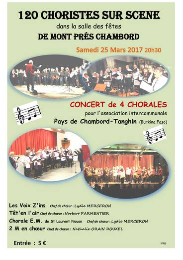 les chorales des Voix z'ins et Têt'en l'air se sont unies pour chanter au profit du Burkina Fasso avec l'association Pays de Chambord Thanghin dans la salle des fêtes de Huisseau sur Cosson