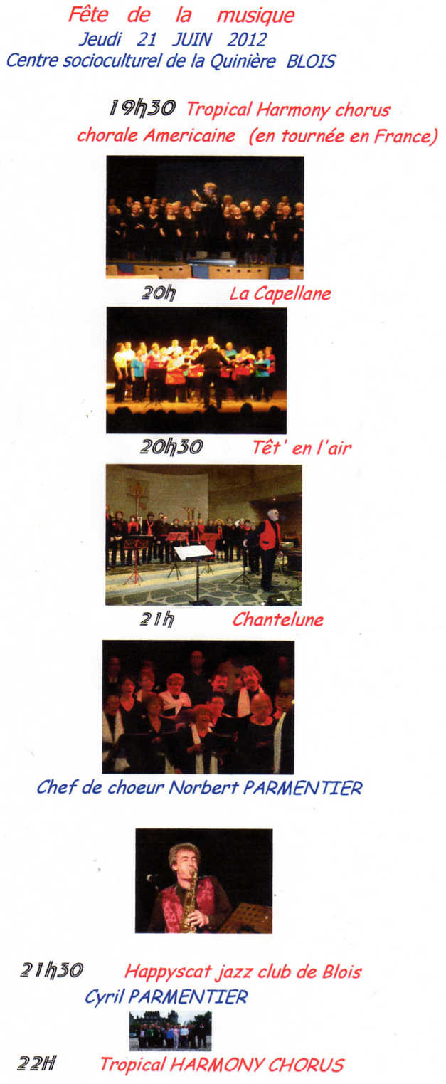 Une belle soirée de Juin, avec des groupes différents et mais aussi une belle rencontre avec cette Chorale Américaine TROPICAL HARMOY CHORUS de passage à Blois qui souhaitait participer à la Fête de la Musique