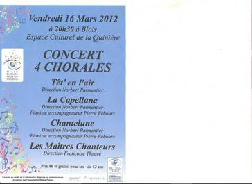 Un concert à 4 chorales est organisé au profit de la recherche médicale en ophtalmologie soutenue par l'Association RETINA FRANCE au Centre culturel de la Quinière à Blois