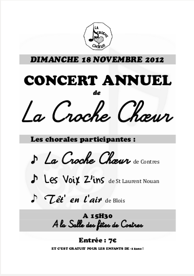 Novembre 2012 Participation au Concert de La Croche Choeur de Contres pour leur spectacle de fin d'année