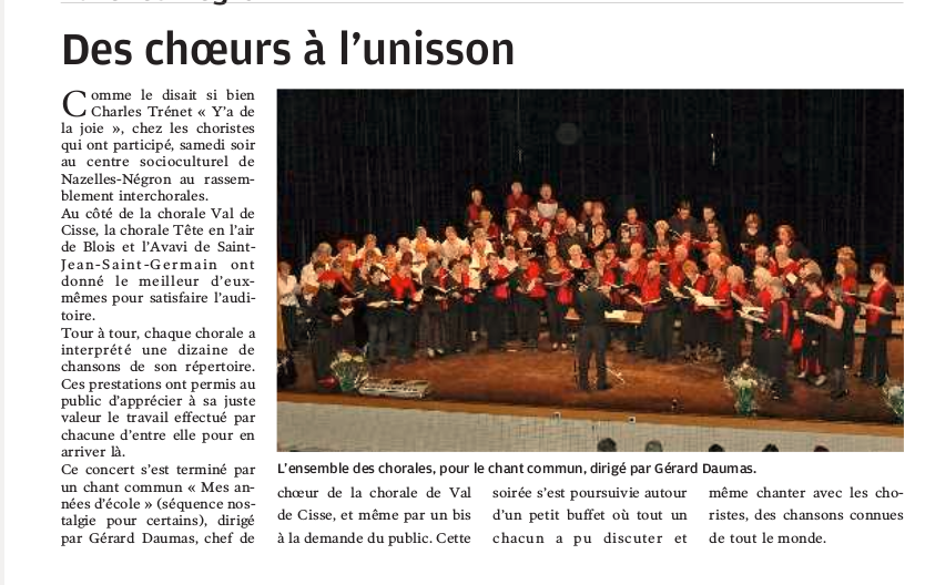 Une belle Rencontre inter-chorales au Centre Socioculturel de Nazelles Négron en avril 2009.